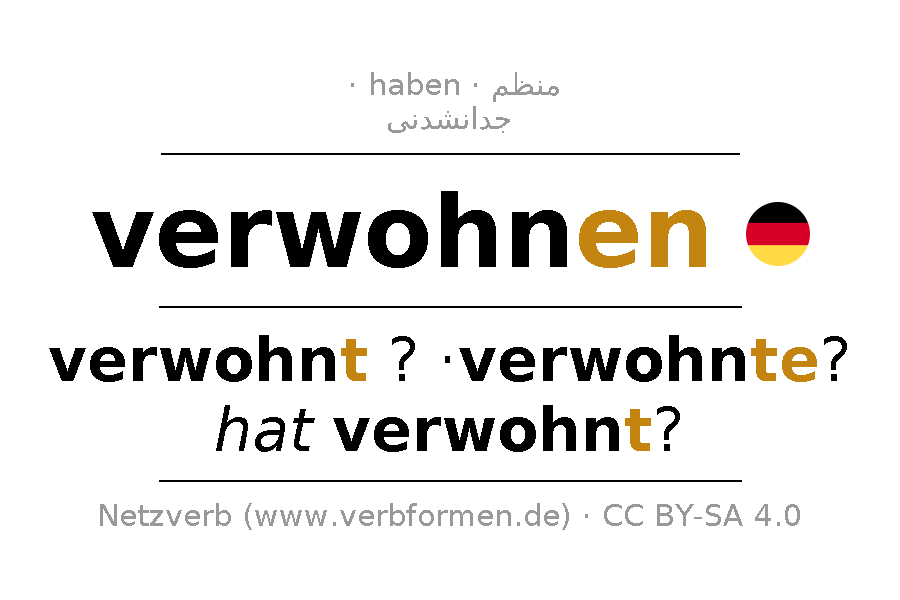 - زمان حال: verwohn(e) (du), verwohnen wir, verwohnt (ihr), verwohnen Sie